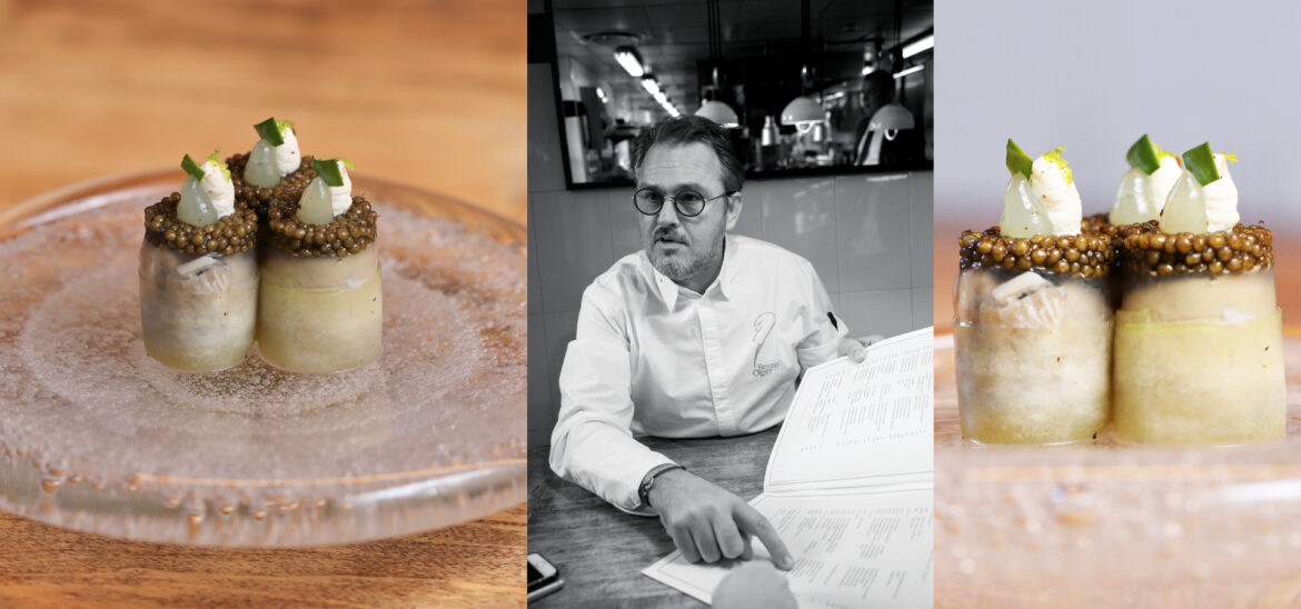 « Je voulais que chaque bouchée évoque le bord de mer, la générosité de ses produits et la fraîcheur de l’air marin », explique Bruno Oger. Le chef de la Villa Archange (Le Cannet), souhaitait capturer l’âme de sa région de cœur : « C’est une balade gustative sur les côtes bretonnes. » Voici sa Recette racontée : « La marinière d’Huîtres Gillardeau N°2, concombre, menthe et caviar Osciètre Impérial Petrossian »