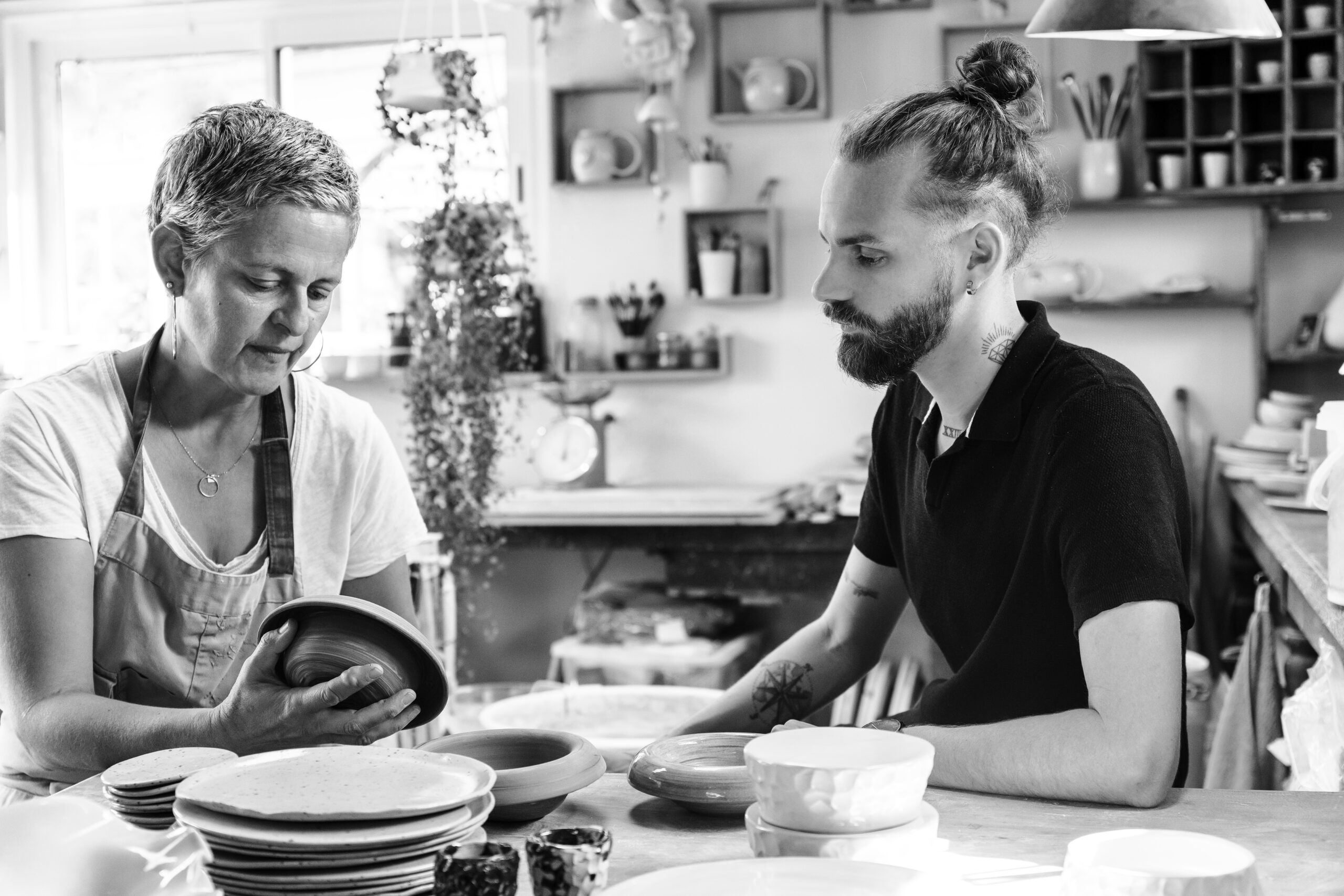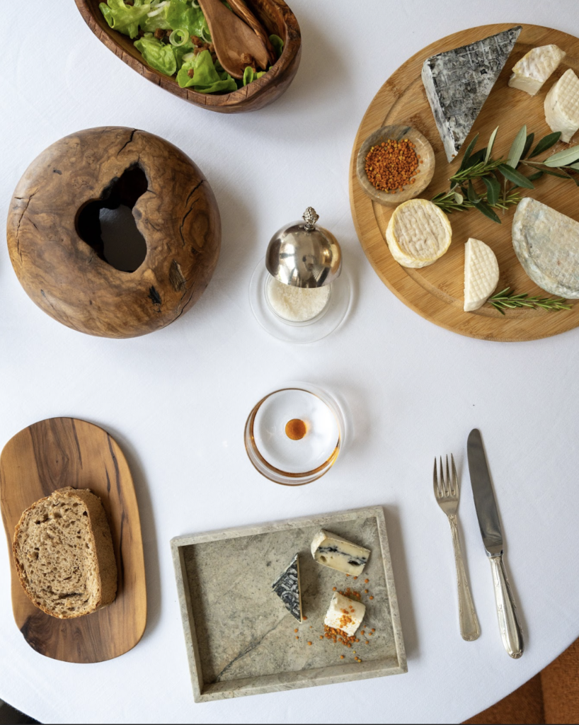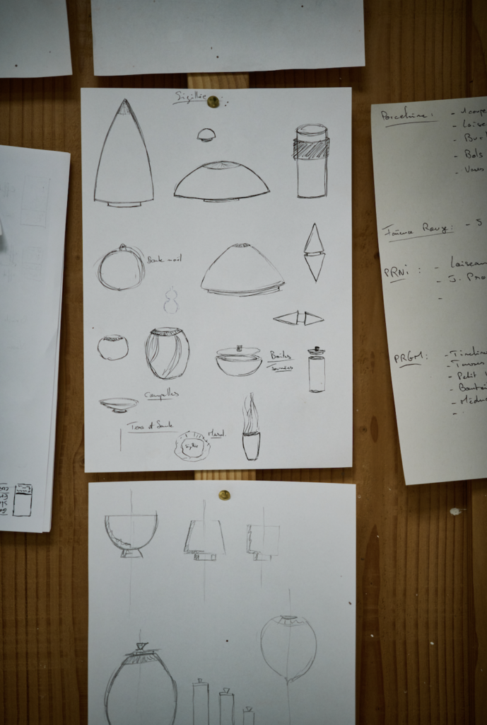 Le chef nous raconte comment ils travaillent ensemble : « Je lui demande de plus en plus de créations. En ce moment, il travaille sur une assiette pour notre foie gras et coquillages : un bassin qui sera émaillé alors que les bords resteront en porcelaine brute. On a également imaginé une carafe pour une boisson d’accueil, des présentoirs à amuse-bouche et une saucière. Je lui fais quelques croquis et il me dit ce qui est réalisable. Il va jusqu’à m’expliquer le degré de rétractation de la matière ! On échange beaucoup et nous avons, ensemble, énormément d’idées. Je souhaite que l’équipe de salle connaisse son histoire et puisse la partager avec nos clients. Créer cet ancrage local avec nos artisans et faire briller les talents de notre territoire sont des valeurs qui sont pour nous extrêmement importantes ! »