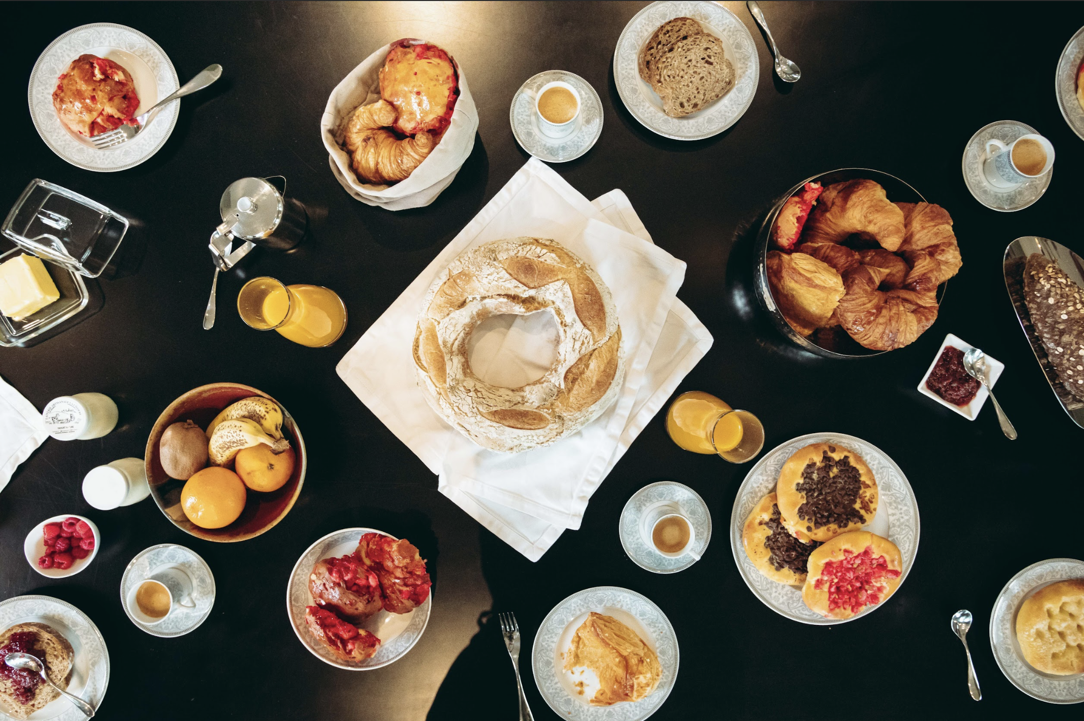 Bénédicte et Marc ont entrepris de rénover un lieu mythique : l’ancienne abbaye de l’Île Barbe à Lyon est devenue, grâce à eux, un petit cocon de verdure et de vieilles pierres. Pour les petits déjeuners des suites, ils ont fait appel à leur voisin boulanger, ami de la famille depuis toujours, Philippe-Marc Jocteur : « Le petit-déjeuner est un moment très important pour nous car c’est la première expérience que vivent nos clients au réveil après une nuit reposante : cela donne un peu le ton de la journée. Nous l’abordons donc avec la même exigence qu’un service de cuisine. Le choix de travailler depuis nos débuts avec Philippe-Marc relève d’une véritable affinité. Nous partageons une même lecture du produit : le respect des fermentations longues, la maîtrise des cuissons, la sélection rigoureuse des farines et l’importance du temps comme ingrédient à part entière. Chaque matin, ses pains, ses viennoiseries et ses tartes à la praline participent pleinement à l’expérience gastronomique proposée à nos hôtes. Plus qu’un voisin, la boulangerie Jocteur incarne pour nous le savoir-faire à la lyonnaise. Ce n’est d’ailleurs pas un hasard si la maison de Philippe-Marc fournit de nombreuses tables de Lyon, dont plusieurs restaurants gastronomiques. »