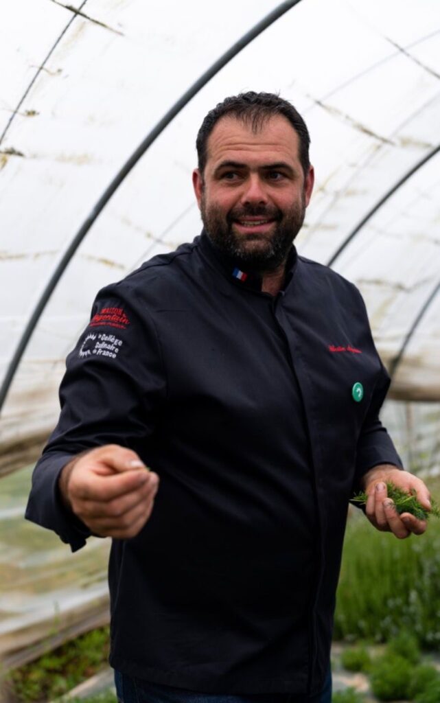 Killian Allain, chef du Donjon à Étretat, nous présente son maraîcher Sébastien Argentain, situé à Octeville-sur-Mer : « La relation avec Sébastien s’est faite naturellement. C’est un producteur engagé qui n’hésite pas à faire vivre son métier auprès de nous. J’ai eu la chance d’aller visiter son activité agricole et c’était un très grand moment. Notre maison est engagée dans une démarche écologique et travailler avec des produits locaux et de saison, c’est fondamental. »