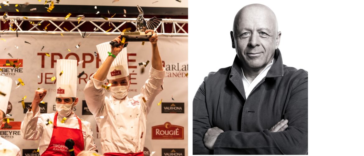 Lors du Trophée Jean Rougié 2022 à Sarlat, le Président du jury Thierry Marx a témoigné de son affection pour un produit d’excellence qu’il a cuisiné de manières différentes depuis ses débuts jusqu’à aujourd’hui, de la terrine de son apprentissage jusqu’à son pressé de foie gras et anguille fumée. En parallèle, Alan Geaam nous a raconté sa première rencontre avec cet ingrédient emblématique de la gastronomie française, qu’il a apprivoisé au fil des années.